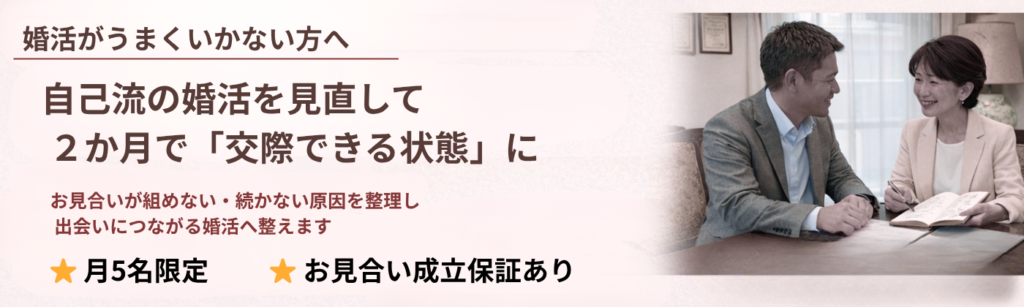 もしうまくいかなかった場合も、理由を一緒に言語化して整えます。次のご縁に活かせる形にして、最短で前進します。