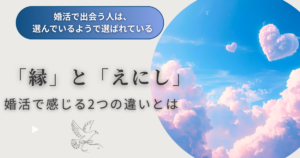 婚活において、「縁」や「えにし」という言葉を、私たちは何気なく使っています。 人との出会い、出来事の巡り合わせ、人生の節目。振り返ってみると、婚活の中で出会った縁やえにしが、偶然のようでいて、どこか必然だったと思える場面 […]